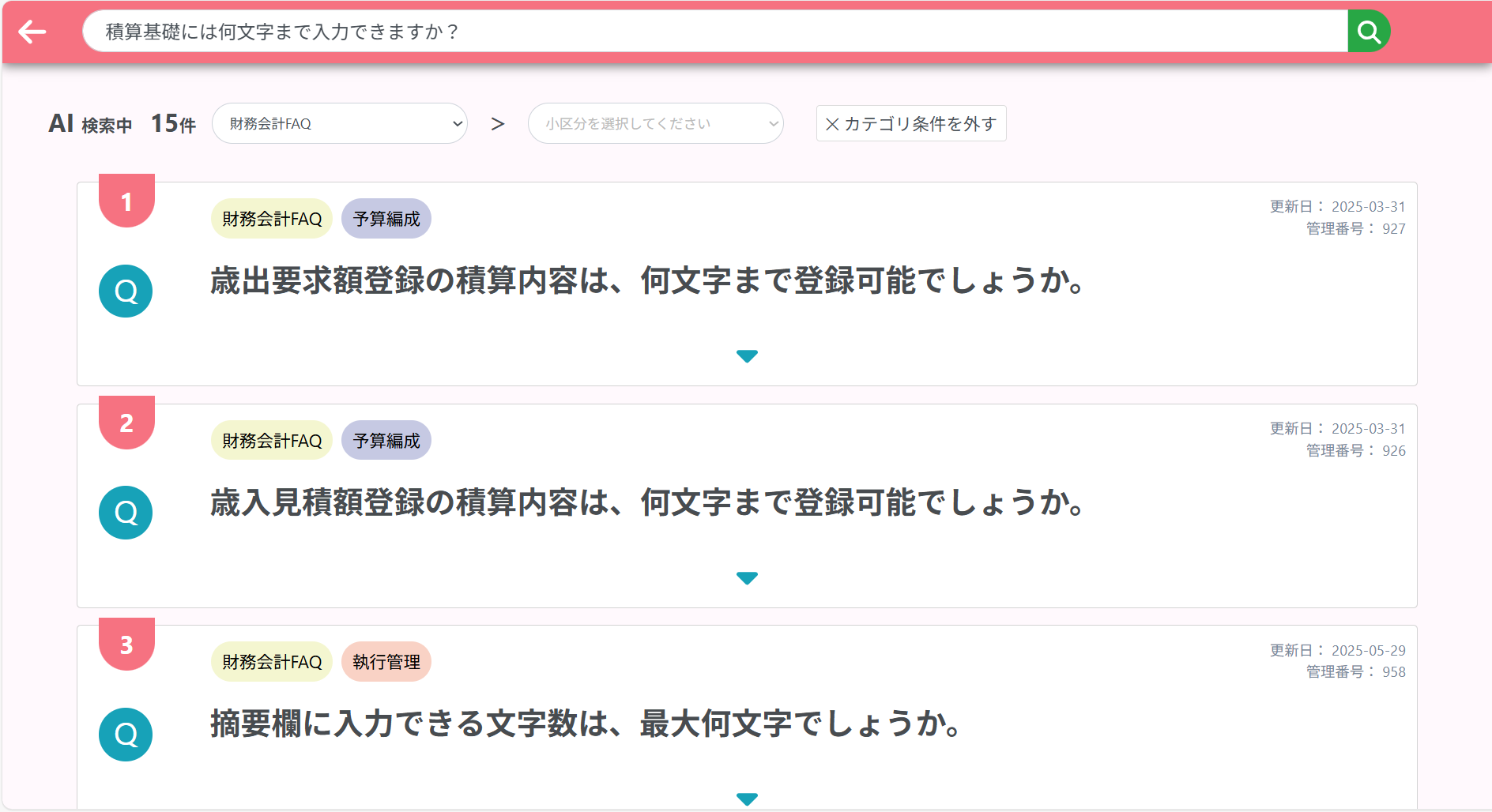 AIにより、日本語の揺らぎも補正しながら関連する質問を解答いたします。