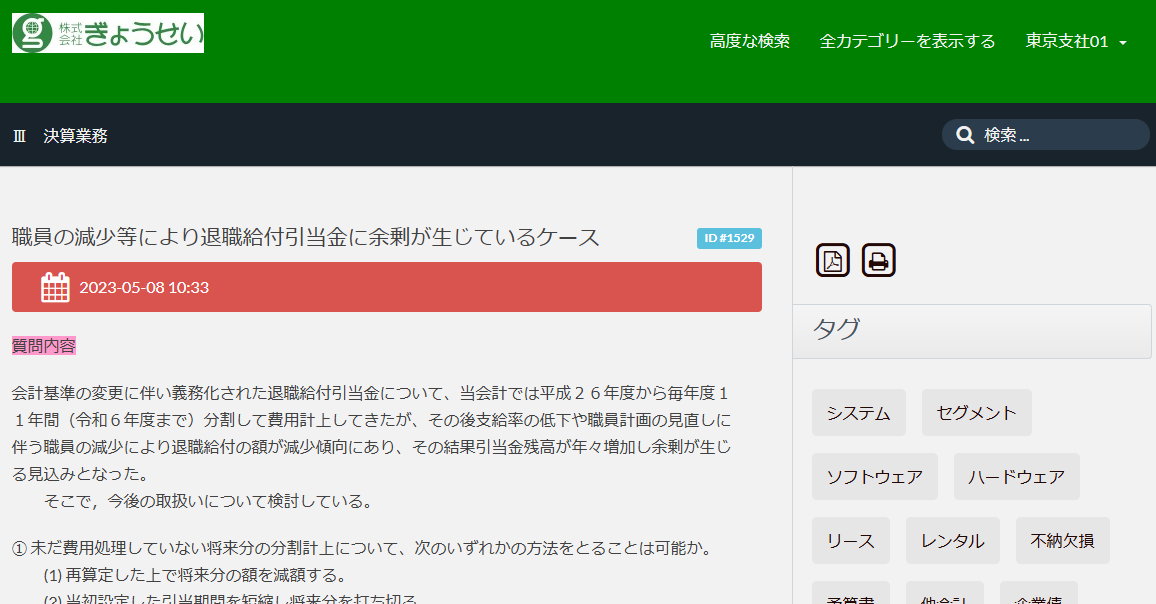 お客様からの質問に対して、公認会計士・開発SE・法制執務のプロから回答をした内容をカテゴリーごとにまとめて掲載しております。